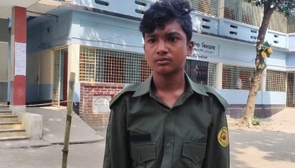 উল্লাপাড়ায় উপজেলা পরিষদ নির্বাচনের ডিউটিতে ৮ম শ্রেণির ছাত্র সিরাজগঞ্জের উল্লাপাড়ায় ৮ম শ্রেণির এক স্কুল ছাত্র আনসারের পোশাক পড়ে নির্বাচনে ডিউটি করছেন। চাচা আলামিনের পরিবর্তে তিনি নির্বাচনে আনসারের ডিউটি করতে এসেছেন