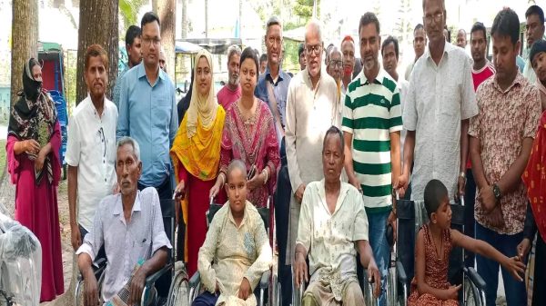 কাউনিয়ায় প্রতিবন্ধীদের মাঝে হুইল চেয়ার বিতরণ